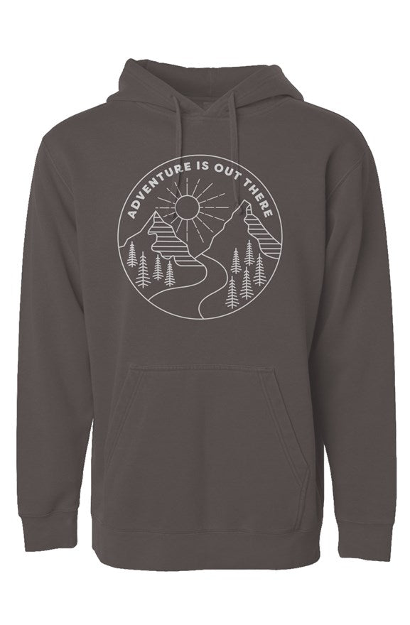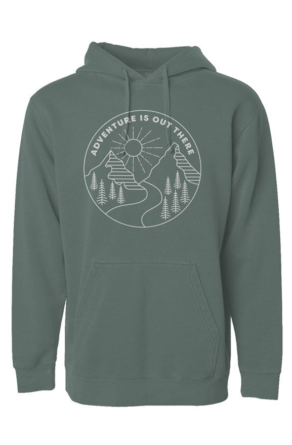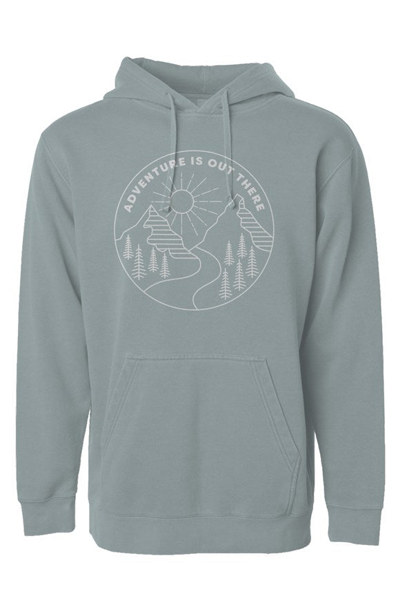 Pigment dyed hoodie with our exclusive Adventure is Out There design printing on the front. It has a great pastel look, with matching drawstrings to create that vintage aesthetic. This unisex mid-weight hoodie is created with full garment dying process making every garment unique with vintage character. They are created with cotton & polyester making them ultra soft. The pigment-dyeing process gives each garment unique character.